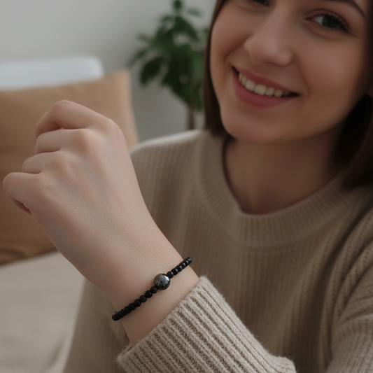 Pulsera hematite con obsidiana negra bolas 4mm