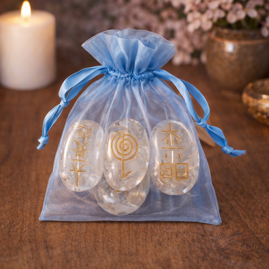 JUEGO SIMBOLOS REIKI CUARZO BLANCO 3,5 CM
