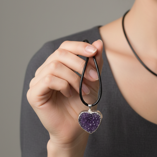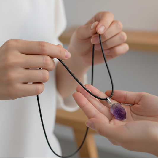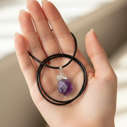 Collar amatista punta con bola de cuarzo 3-4 cm