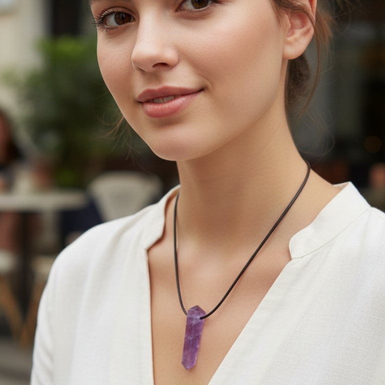 La amatista es una piedra semipreciosa de tonos violetas, reconocida por su energía espiritual, calmante y protectora.