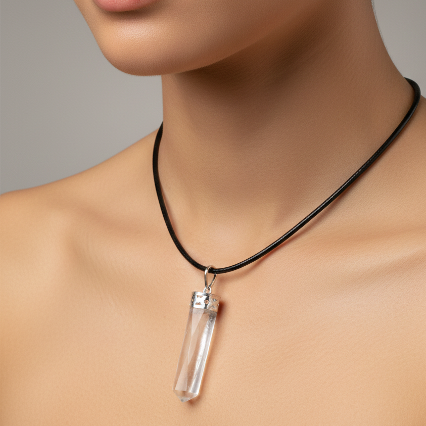 A nivel espiritual, el cuarzo actúa como un canal de conexión entre lo terrenal y lo divino. Eleva la vibración personal, fortalece la meditación y armoniza los chakras, especialmente el corona. Usarlo cerca del corazón o del cuello potencia su efecto protector y equilibrante durante todo el día.