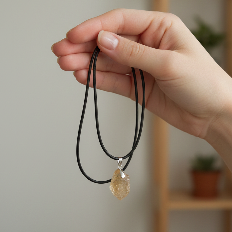 El collar de citrino en plata de ley es conocido por su capacidad para atraer energía positiva, abundancia y prosperidad. Su vibración alegre y cálida ayuda a disipar la negatividad, fomentar la motivación y aumentar la creatividad, brindando un impulso energético natural.