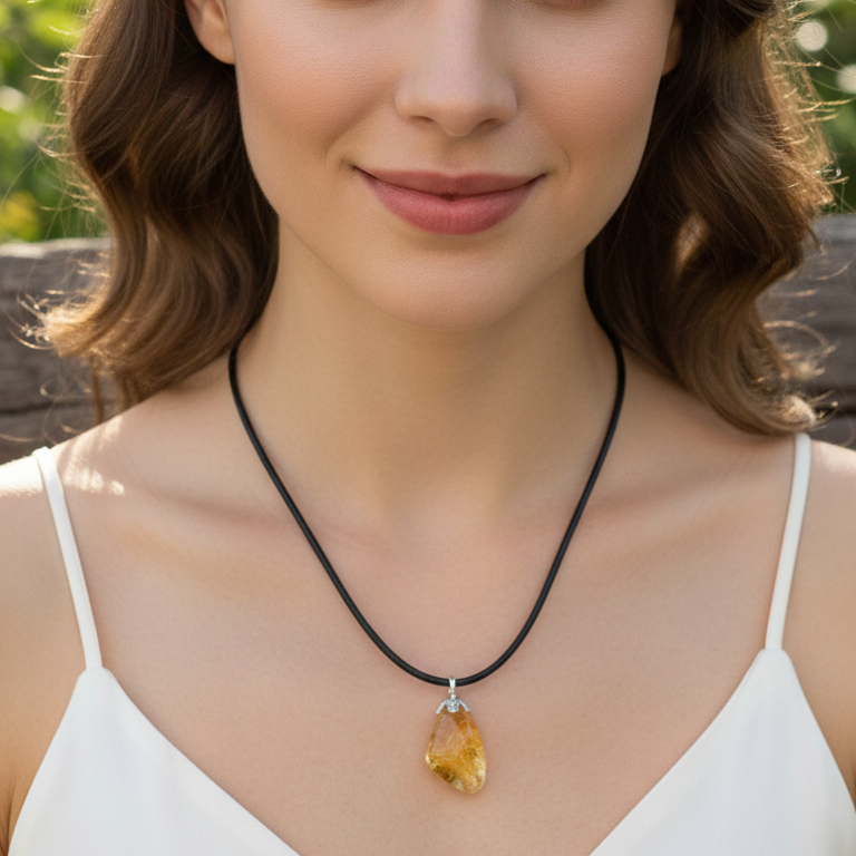 El collar de citrino en plata de ley es conocido por su capacidad para atraer energía positiva, abundancia y prosperidad. Su vibración alegre y cálida ayuda a disipar la negatividad, fomentar la motivación y aumentar la creatividad, brindando un impulso energético natural.