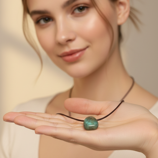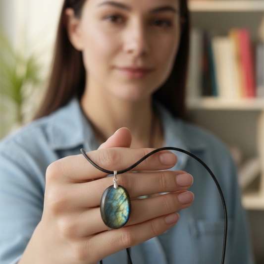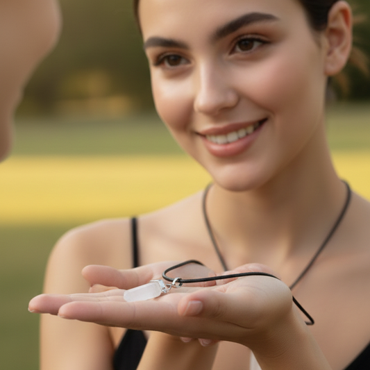 Collar piedra luna punta con bola de cuarzo 3-4 cm