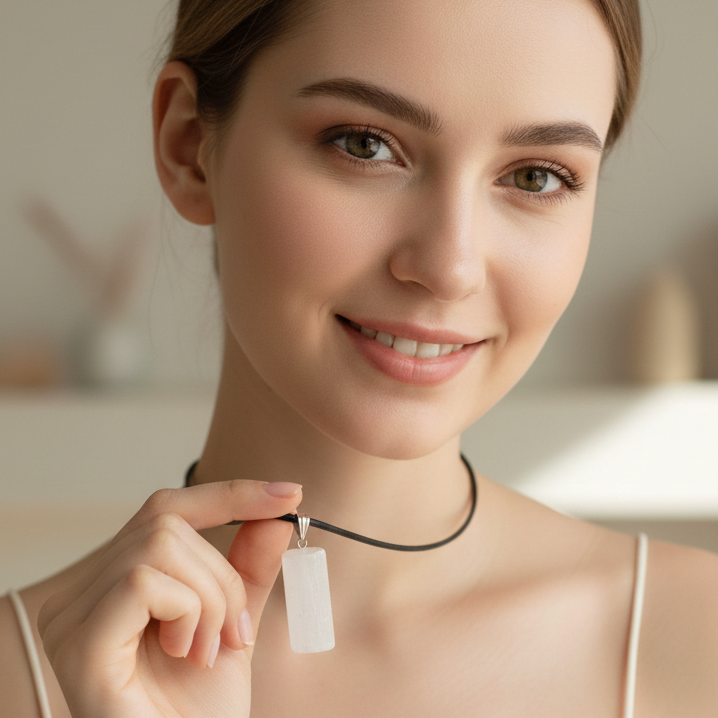 La selenita es una piedra de luz pura, conocida por su poder de limpieza, elevación espiritual y conexión con planos superiores.