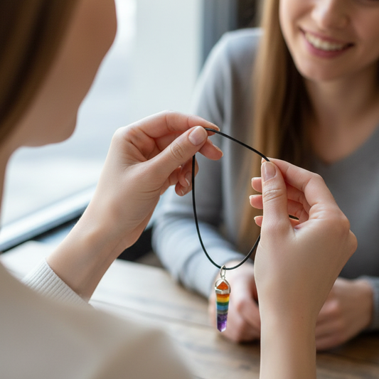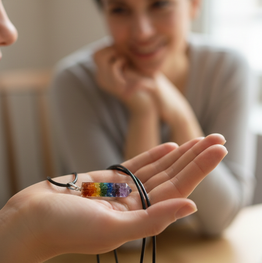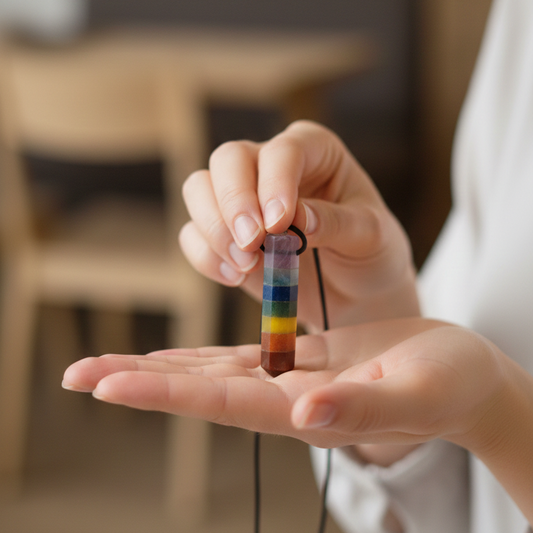 Collar 7 chakras punta con bola de cuarzo 3-4 cm