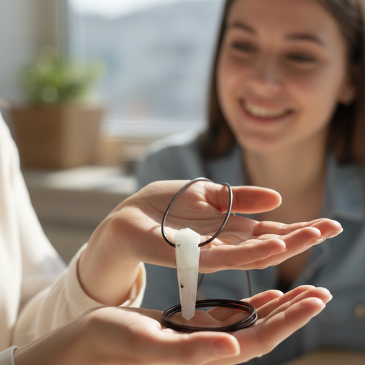 Collar piedra luna punta con bola de cuarzo 3-4 cm