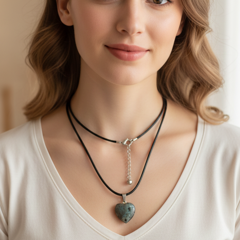 Llevar un collar de labradorita es como portar un amuleto mágico. Esta piedra estimula la intuición, activa el tercer ojo y potencia la percepción espiritual. Es perfecta para quienes buscan claridad interior, guía intuitiva y conexión con planos sutiles.