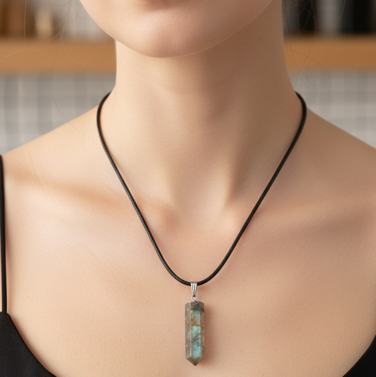 Llevar un collar de labradorita es como portar un amuleto mágico. Esta piedra estimula la intuición, activa el tercer ojo y potencia la percepción espiritual. Es perfecta para quienes buscan claridad interior, guía intuitiva y conexión con planos sutiles.