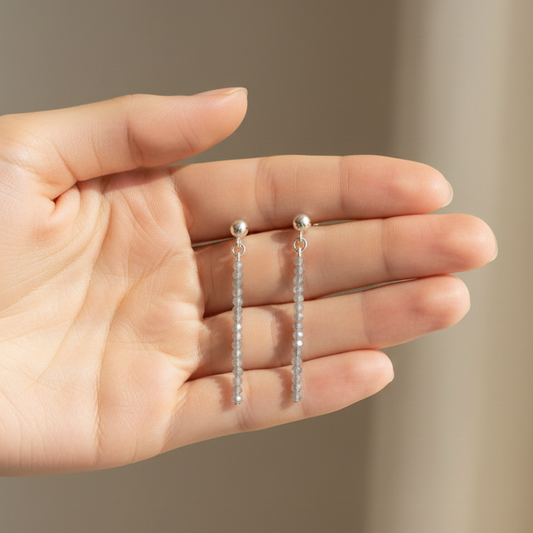 Pendientes largos labradorita bolas talladas 2mm