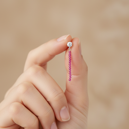 Pendientes largos rubí bolas talladas 2mm