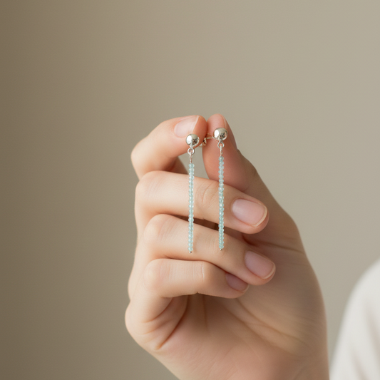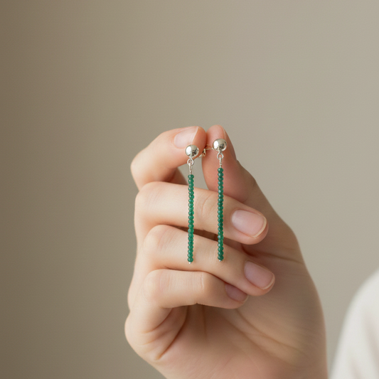 Pendientes largos Esmeralda bolas talladas 2mm