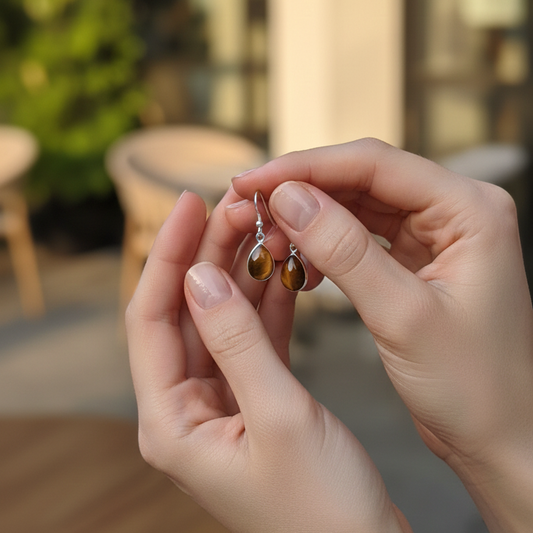 Pendientes plata de ley lágrima ojo de tigre