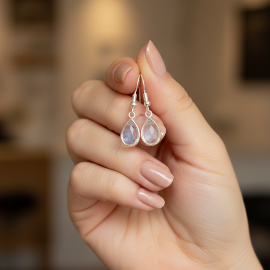Pendientes de cuarzo lágrima plata de ley