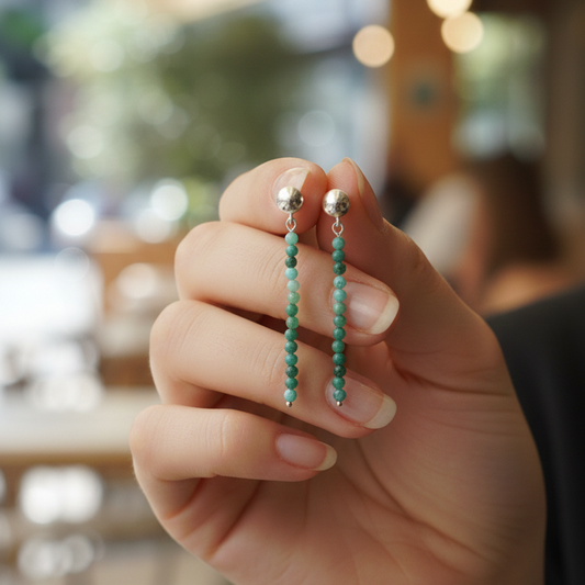 Pendientes largos Crisocola bolas talladas 2mm