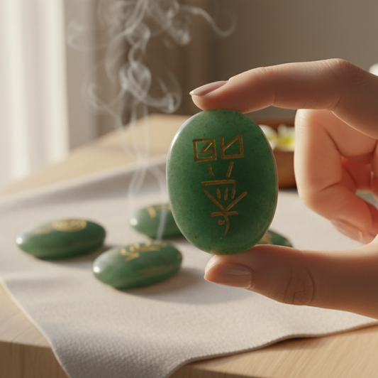 JUEGO SIMBOLOS REIKI CUARZO VERDE 3,5 CM