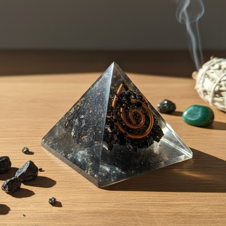 Pirámide turmalina negra orgonita 3 cm