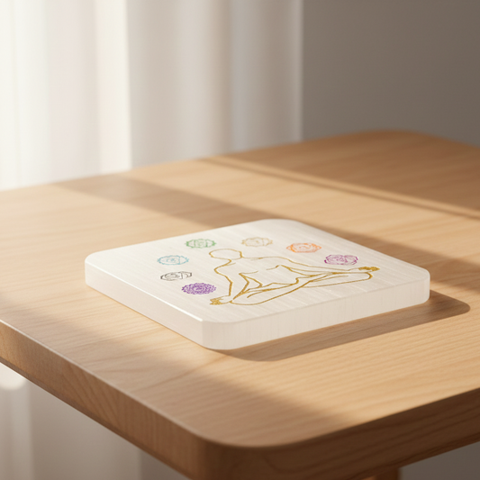 Placa recarga selenita 7 chakras 8 cm