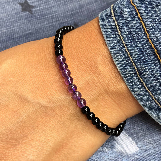 Pulsera amatista con obsidiana negra bolas 4mm