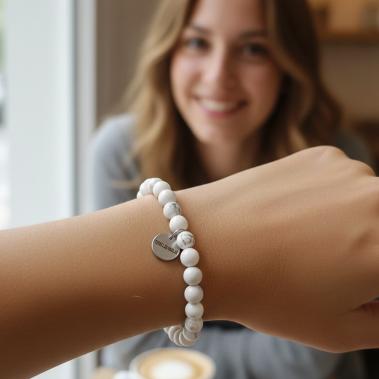 Con cada roce de la magnesita sobre tu piel, sentirás una conexión profunda con la tierra, una energía que te arraiga y te ayuda a liberar las tensiones acumuladas. Es como si la propia pulsera te susurrara al oído: "Estás a salvo, estás en paz". Te ayudará a gestionar las emociones más intensas, transformando la preocupación en una suave aceptación, la ansiedad en una serena confianza. Con ella, aprenderás a escuchar tu intuición con mayor claridad, a tomar decisiones desde un lugar de sosiego y a expresar tus sentimientos con una autenticidad que te empodera.
