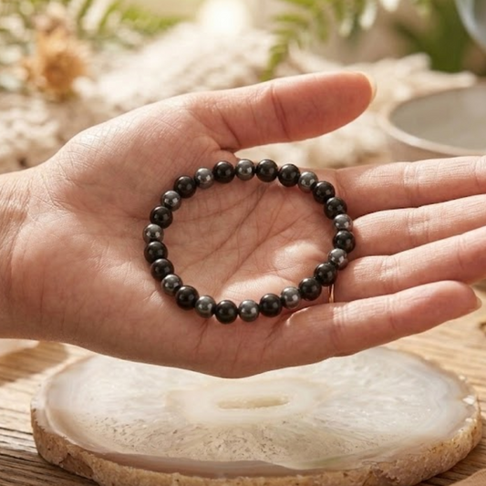 Protección y Fuerza para tu Energía (pulsera hematite con obsidiana negra bolas 4mm)
