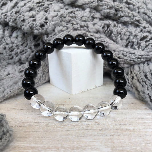 Pulsera cuarzo blanco con obsidiana negra bolas 8mm