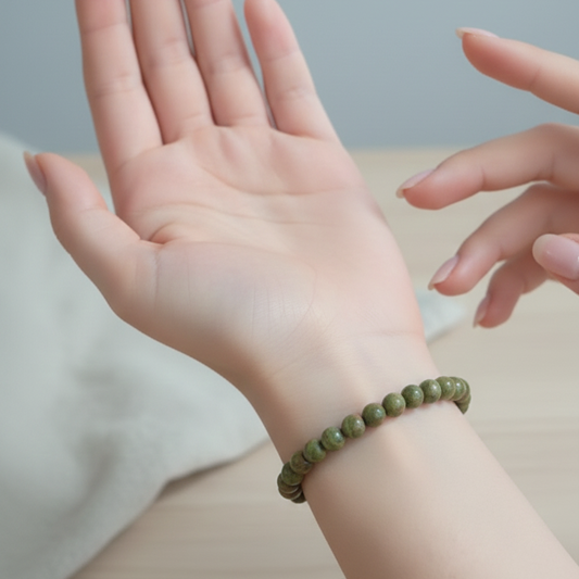 Pulsera cuarzo verde bolas ajustable shambala