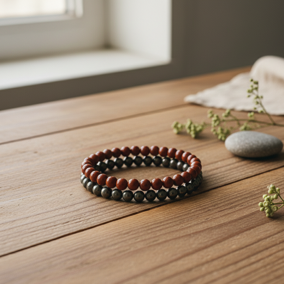 Juntas, crean una sinergia invencible: mientras la obsidiana purifica y protege tu espacio sagrado, el jaspe rojo te impulsa a actuar con seguridad y fuego interior. Es la combinación esencial para la mujer que desea caminar protegida mientras conquista sus metas con una confianza absoluta.