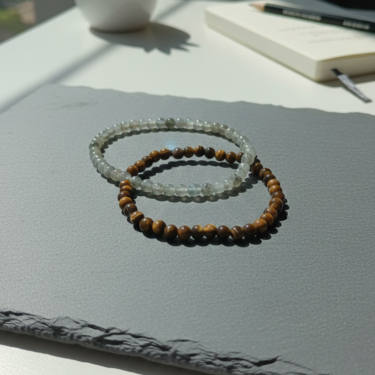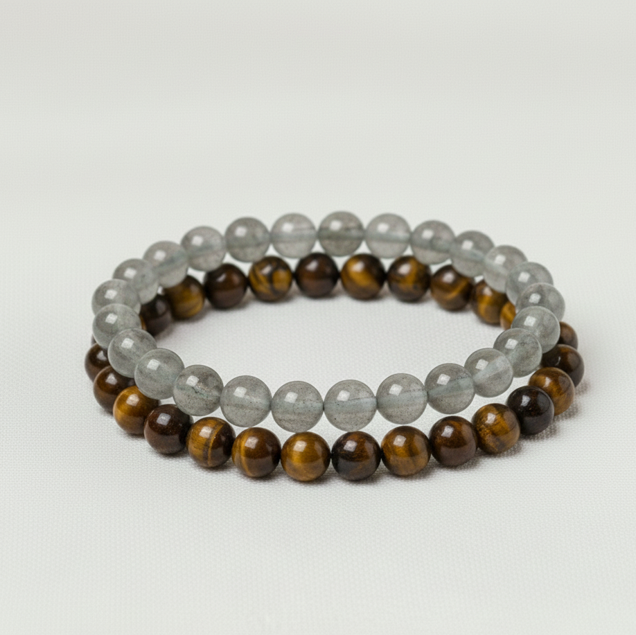 Juntas, crean una sinergia invencible: mientras el ojo de tigre te ancla a la tierra y potencia tu seguridad en el plano físico, la labradorita eleva tu espíritu y protege tu energía creativa en el plano espiritual. Es la combinación esencial para la mujer que busca manifestar su éxito con paso firme, sin perder nunca la conexión con su esencia mágica y su propósito superior.