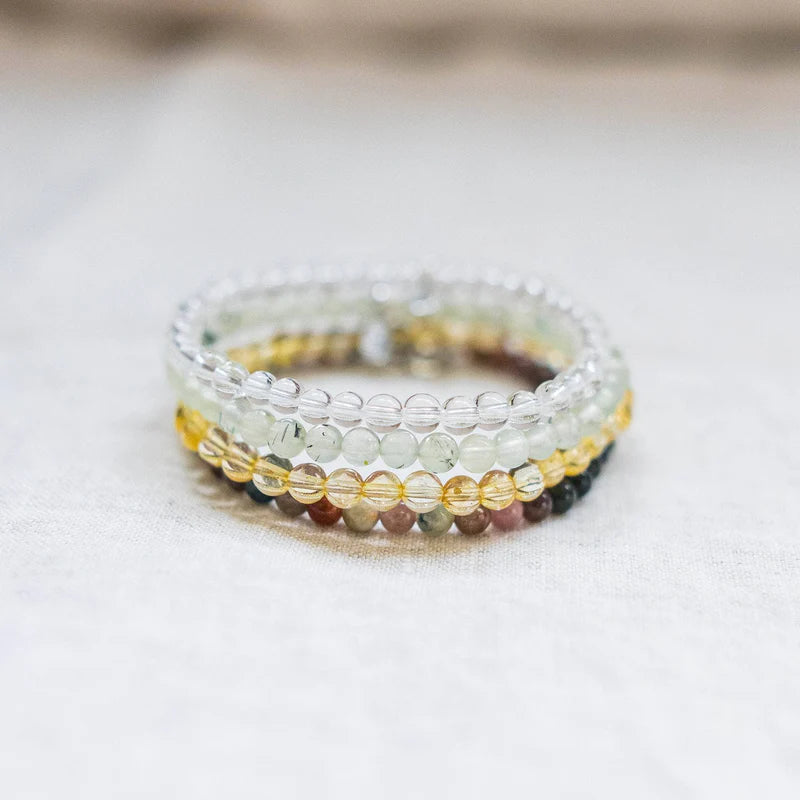 Diseñado para aportar luz, energía y apoyo emocional, este pack combina la vitalidad solar del Citrino, la vibración amorosa de la Prehnita, la energía juguetona de la Turmalina Arcoíris y la pureza brillante del Cuarzo Blanco.