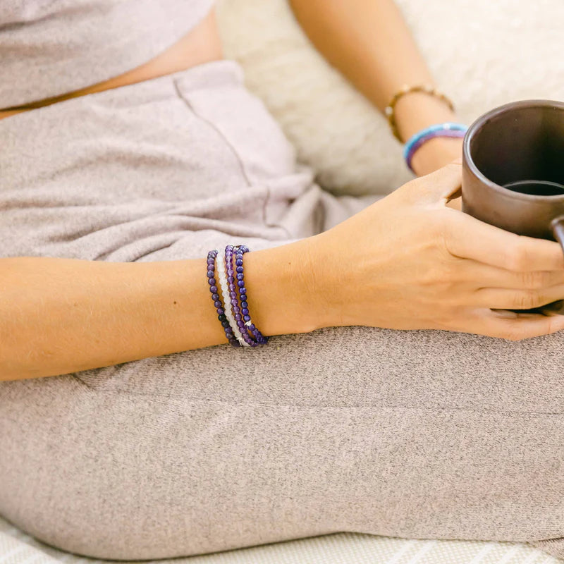 La máxima expresión de espiritualidad, este conjunto de pulseras del Chakra Corona te envolverá en una atmósfera de serenidad y te conectará con tu propósito superior. Con gemas semipreciosas cuidadosamente seleccionadas, te enamorarás de este elegante conjunto de pulseras elásticas que incluye amatista, charoíta, lepidolita y selenita. Ábrete a una sanación espiritual, emocional y física superior. “Con estas piedras, me convierto en un canal para que la luz, el amor y el universo fluyan a través de mí”.