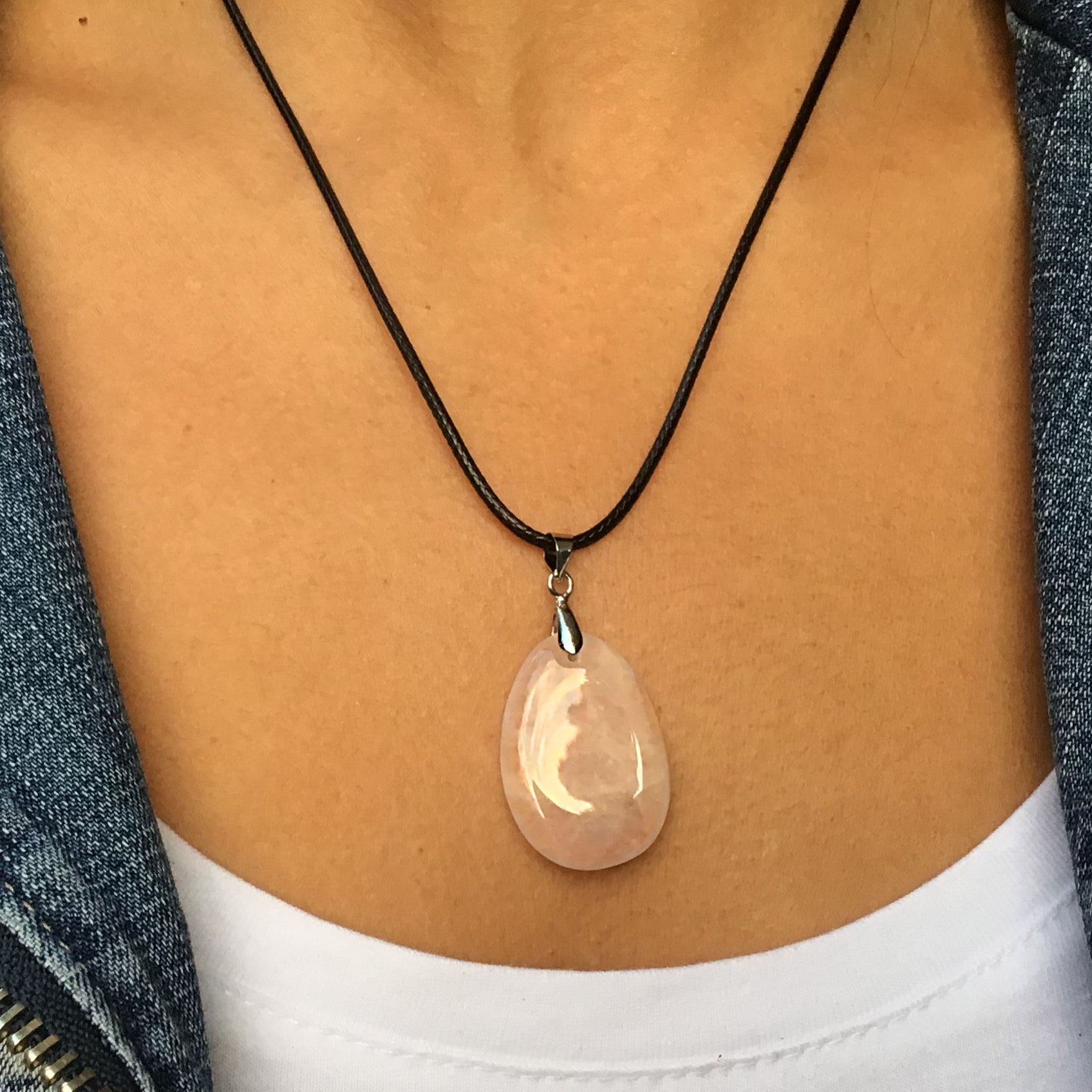 Collar cuarzo rosa cabujon 3 cm