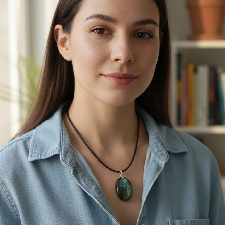 Llevar un collar de labradorita es como portar un amuleto mágico. Esta piedra estimula la intuición, activa el tercer ojo y potencia la percepción espiritual. Es perfecta para quienes buscan claridad interior, guía intuitiva y conexión con planos sutiles.