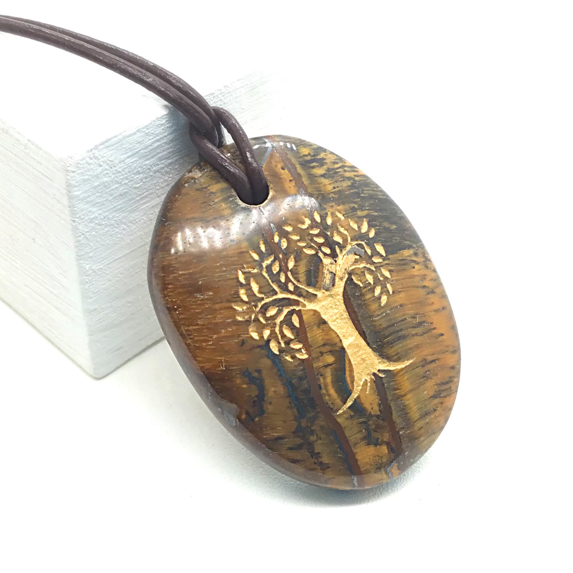 Collar ojo de tigre arbol de la vida plano 3-4 cm