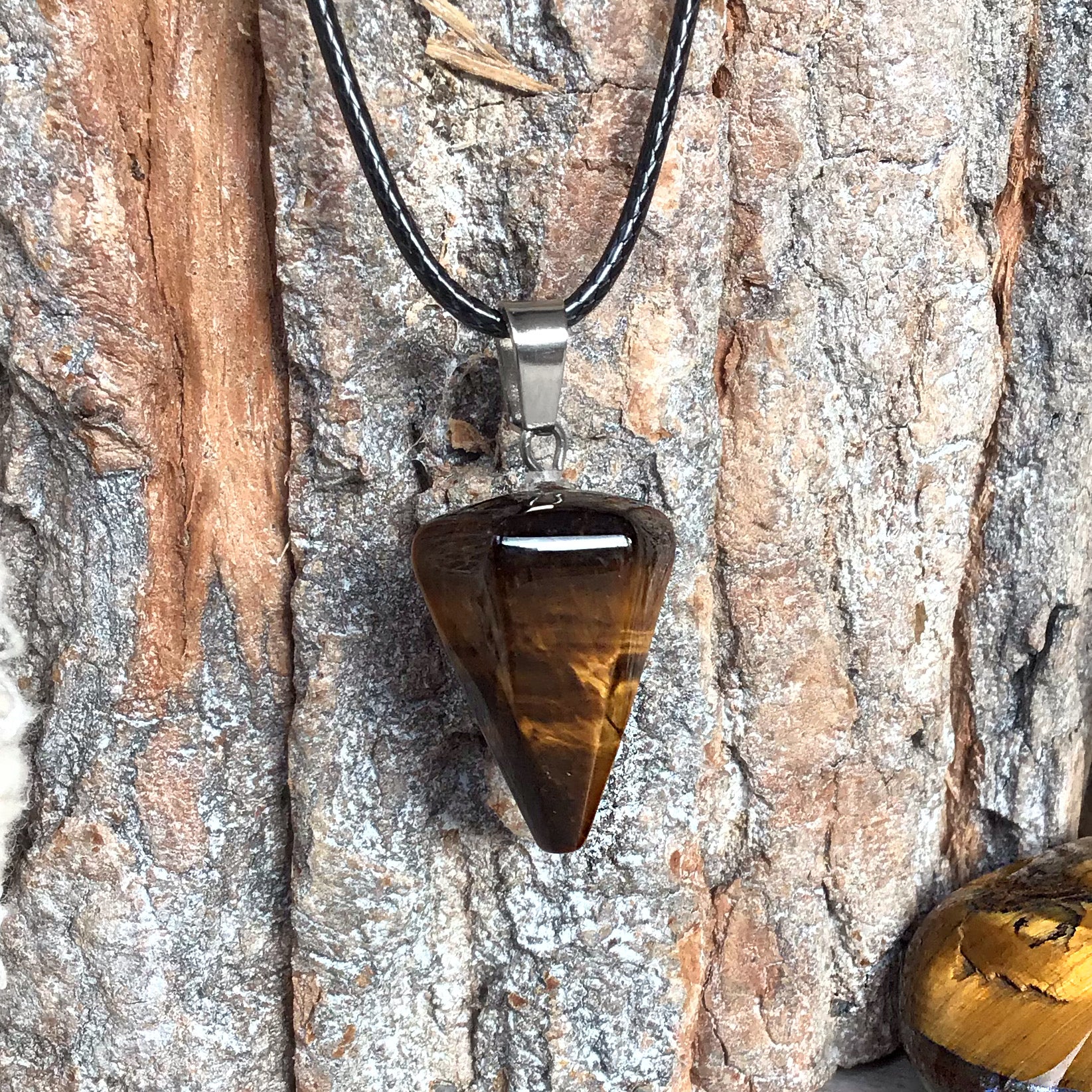 Collar ojo de tigre forma péndulo mini 1-2 cm