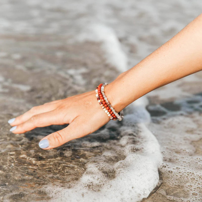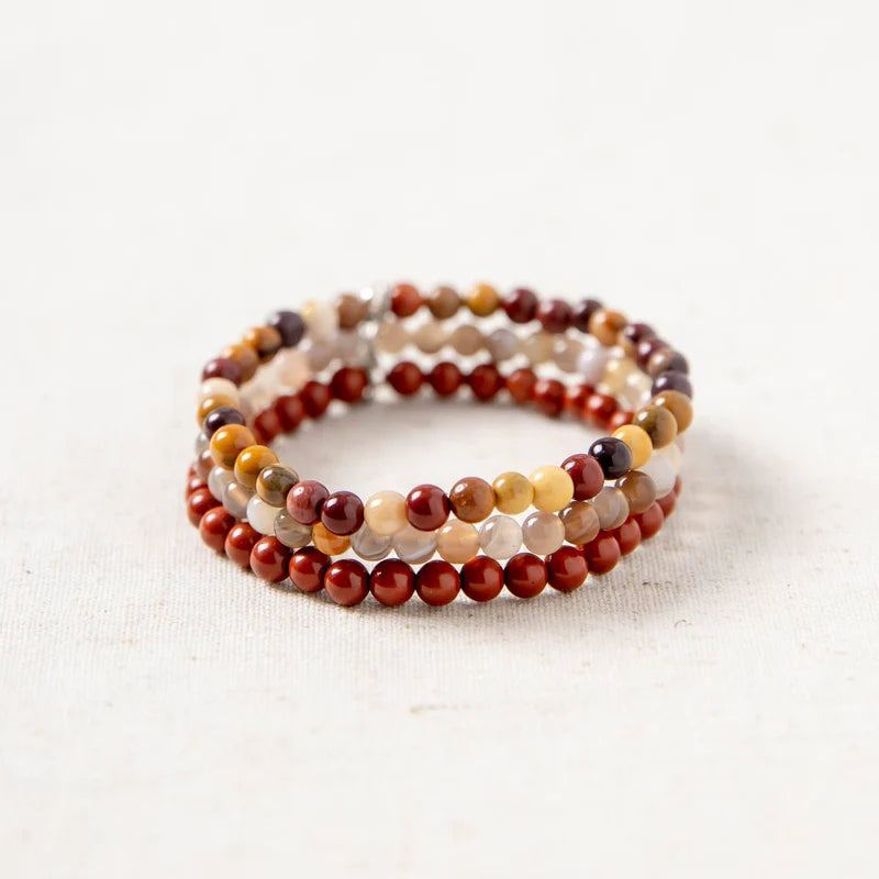 Enfréntate a la oscuridad con claridad mental y fortaleza gracias al juego de pulseras Coraje y Fuerza. Compuesto por el reconfortante jaspe rojo, la terrenal ágata de Botsuana y la espiritual y revitalizante piedra del jaspe mookaíta, este trío sagrado en tu muñeca te mantendrá firme y con la frente en alto. «Con estas tres, soy dueña de mi propio destino».