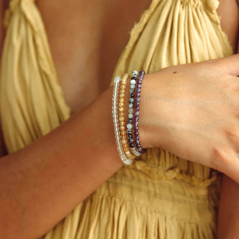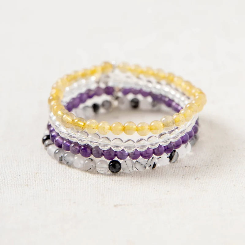 Alcanza un punto culminante en tu camino de sanación al aceptar el ciclo de absorción, almacenamiento, liberación y regulación que te devolverá el equilibrio. El Set de Pulseras de Sanación Maestra combina las piedras relajantes de amatista, cuarzo cristal y cuarzo rutilado amarillo y negro para aligerar tu carga. “Estoy lista para ser mi propia salvación”.