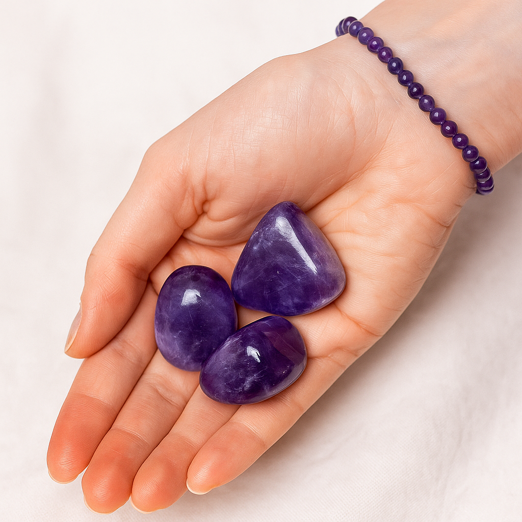 Además de fomentar una conexión espiritual más profunda, la amatista también equilibra las glándulas endocrinas, ayudando a mantener una armonía hormonal que se traduce en estabilidad emocional.