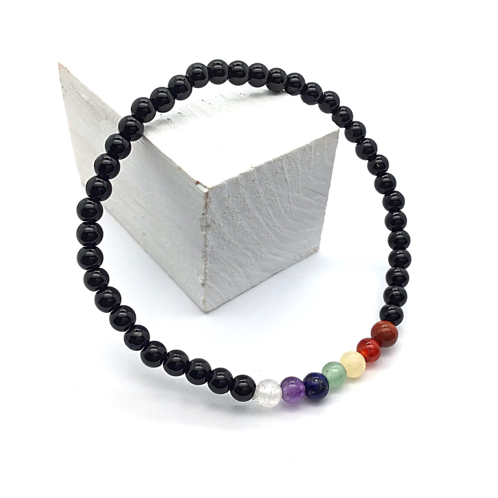 Pulsera 7 chakras con obisidiana negra bolas 4mm