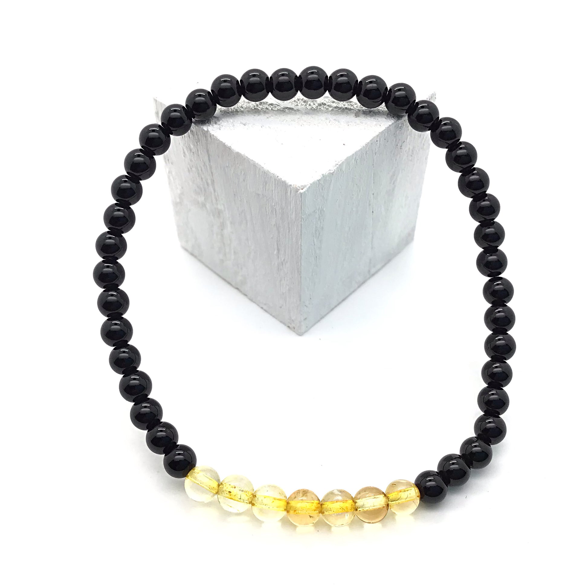 Pulsera Citrino Con Obsidiana negra bolas 4mm