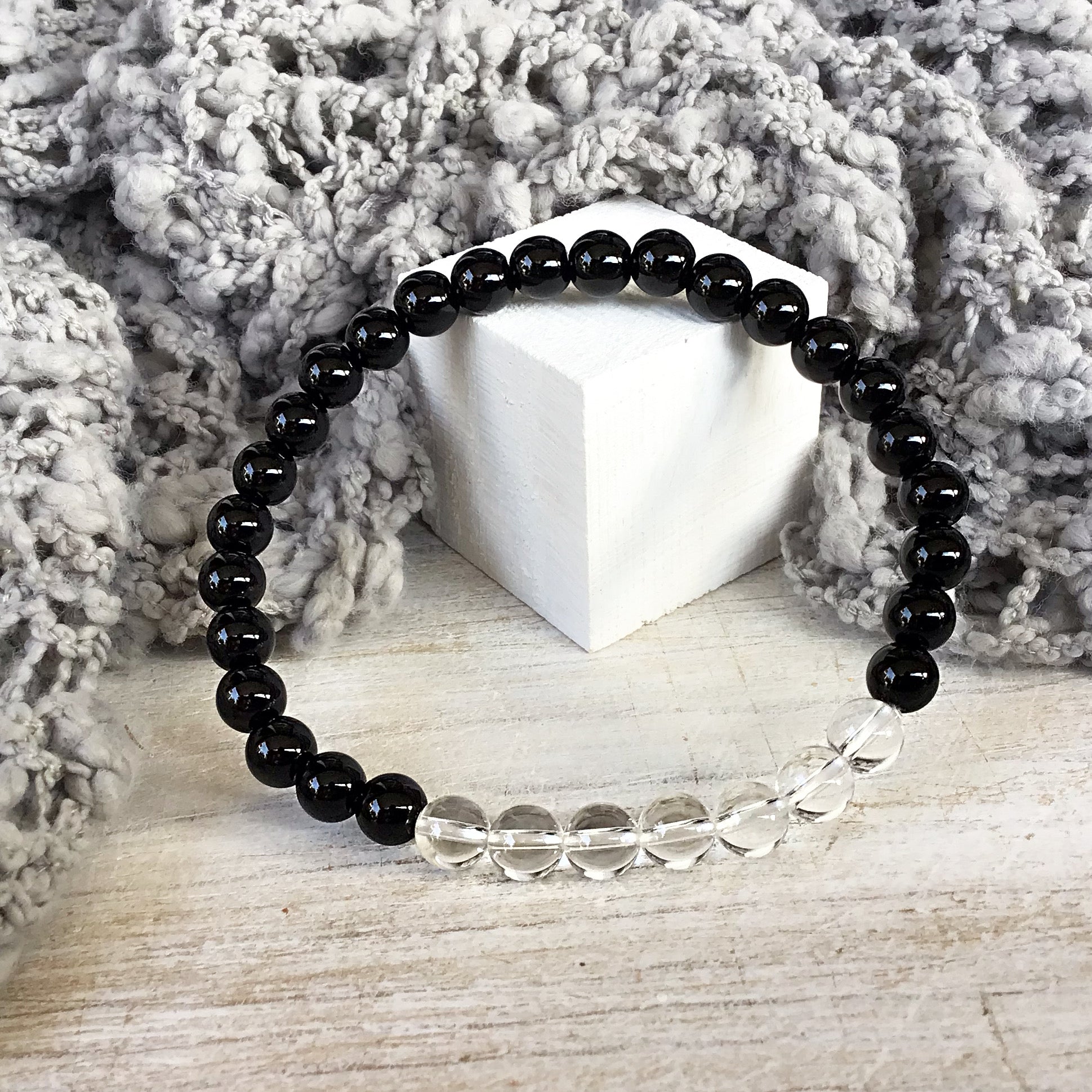 Pulsera cuarzo blanco con obsidiana negra bolas 6mm