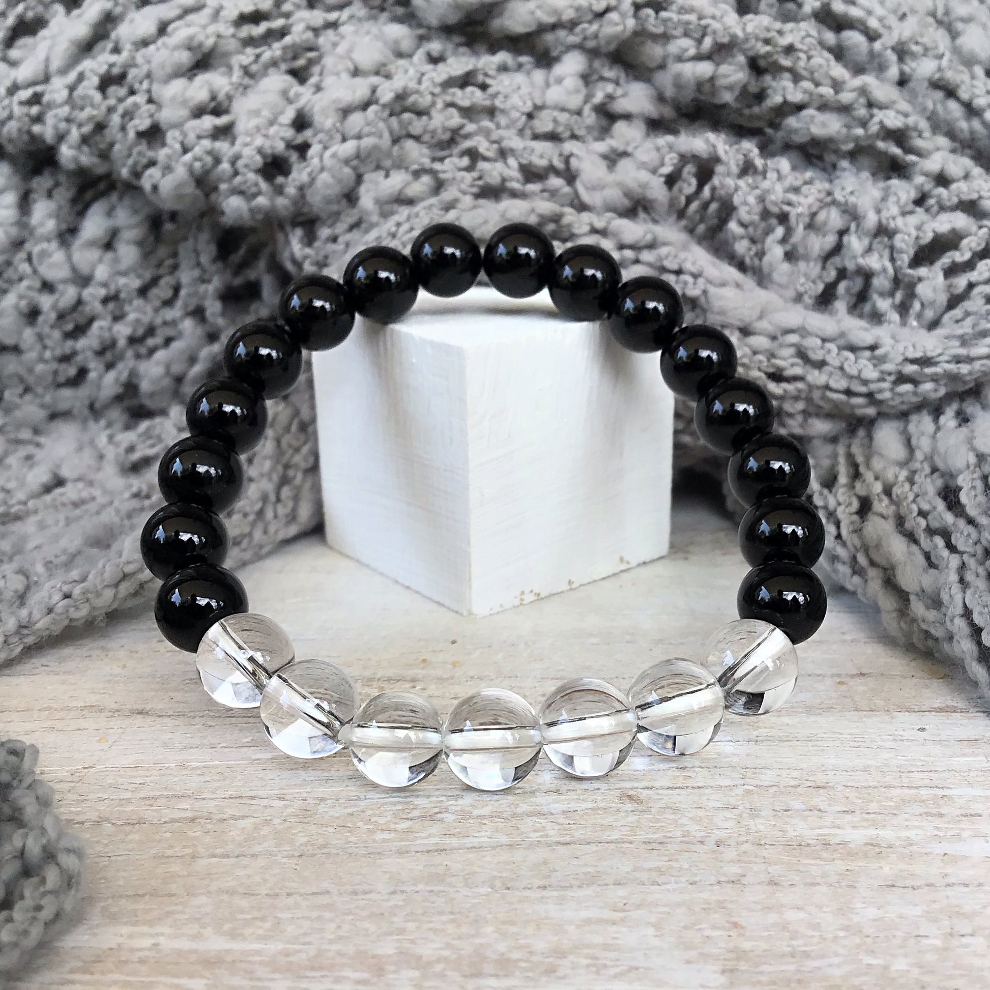 La obsidiana negra absorbe y bloquea las energías negativas, mientras que el cuarzo las transforma en vibraciones positivas. Llevar esta pulsera te ayudará a mantenerte protegido, equilibrado y en armonía con tu entorno.