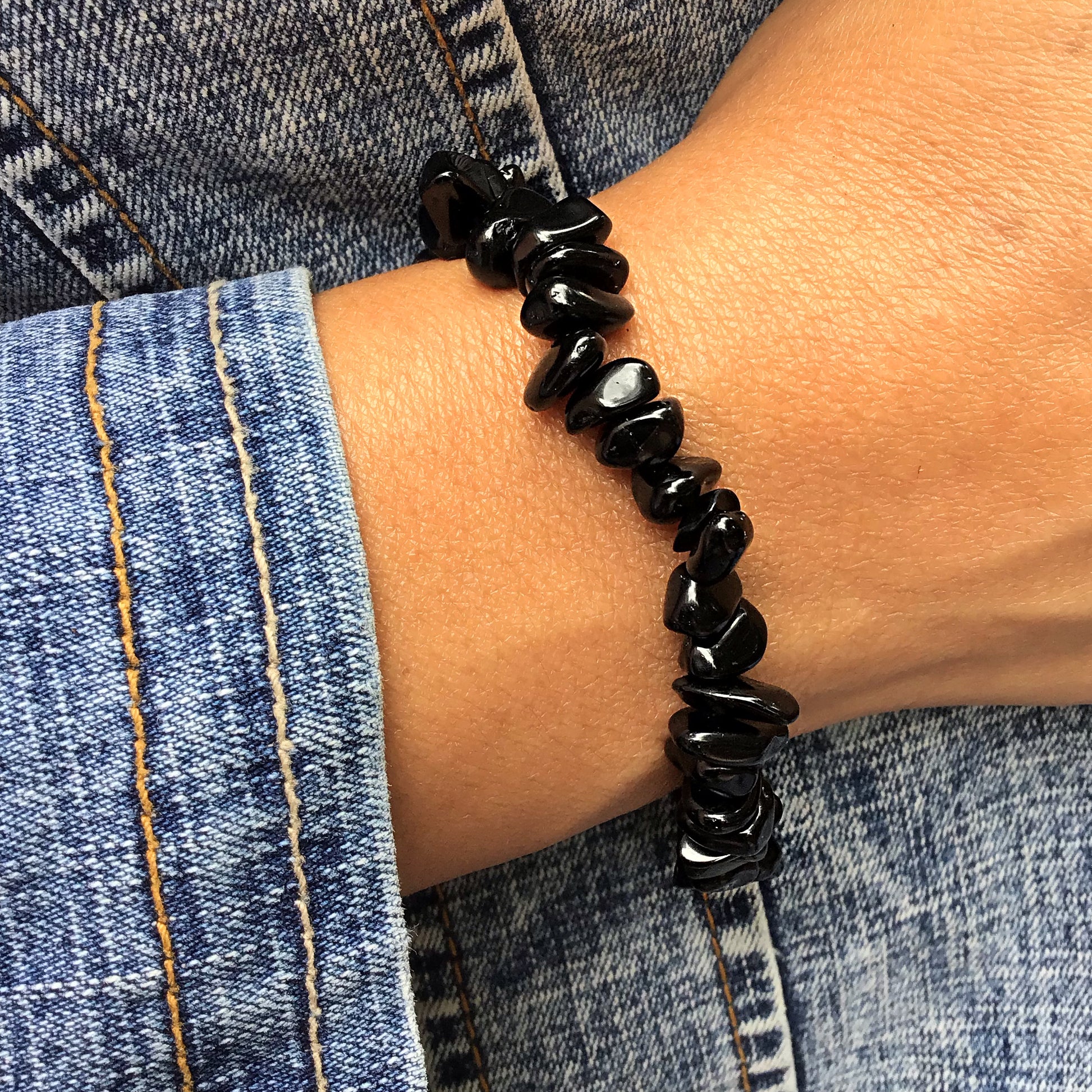 La pulsera de obsidiana negra ofrece una poderosa protección energética, ayudando a bloquear las malas vibras, el mal de ojo y la negatividad externa. Favorece la introspección, el enraizamiento y la fortaleza interior en momentos difíciles. Está destinada a personas sensibles, expuestas a entornos densos o que buscan sentirse seguras y emocionalmente fuertes.