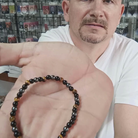 Cuando estas tres piedras están combinadas en una pulsera, crean un poderoso amuleto de protección, equilibrio y claridad. La combinación de la obsidiana negra, que protege y limpia energías negativas, con la hematite, que ancla y equilibra, y el ojo de tigre, que aporta poder y valentía, permite que la persona esté mejor protegida tanto a nivel físico como emocional.