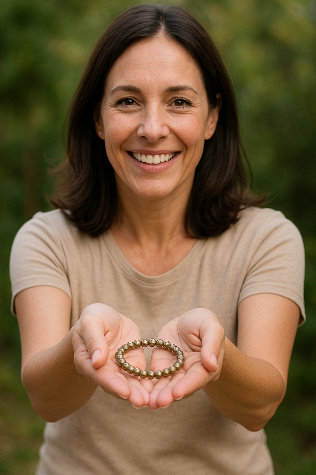 Hoy te colocas tu pulsera de Pirita y sientes algo distinto… como si el día te mirara con una sonrisa.